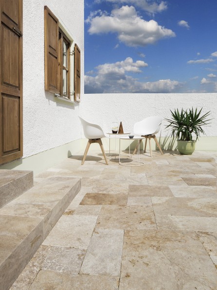 Dadurch entsteht beim Travertin „Tuscany beige“ ein reizvolles Farbspiel,